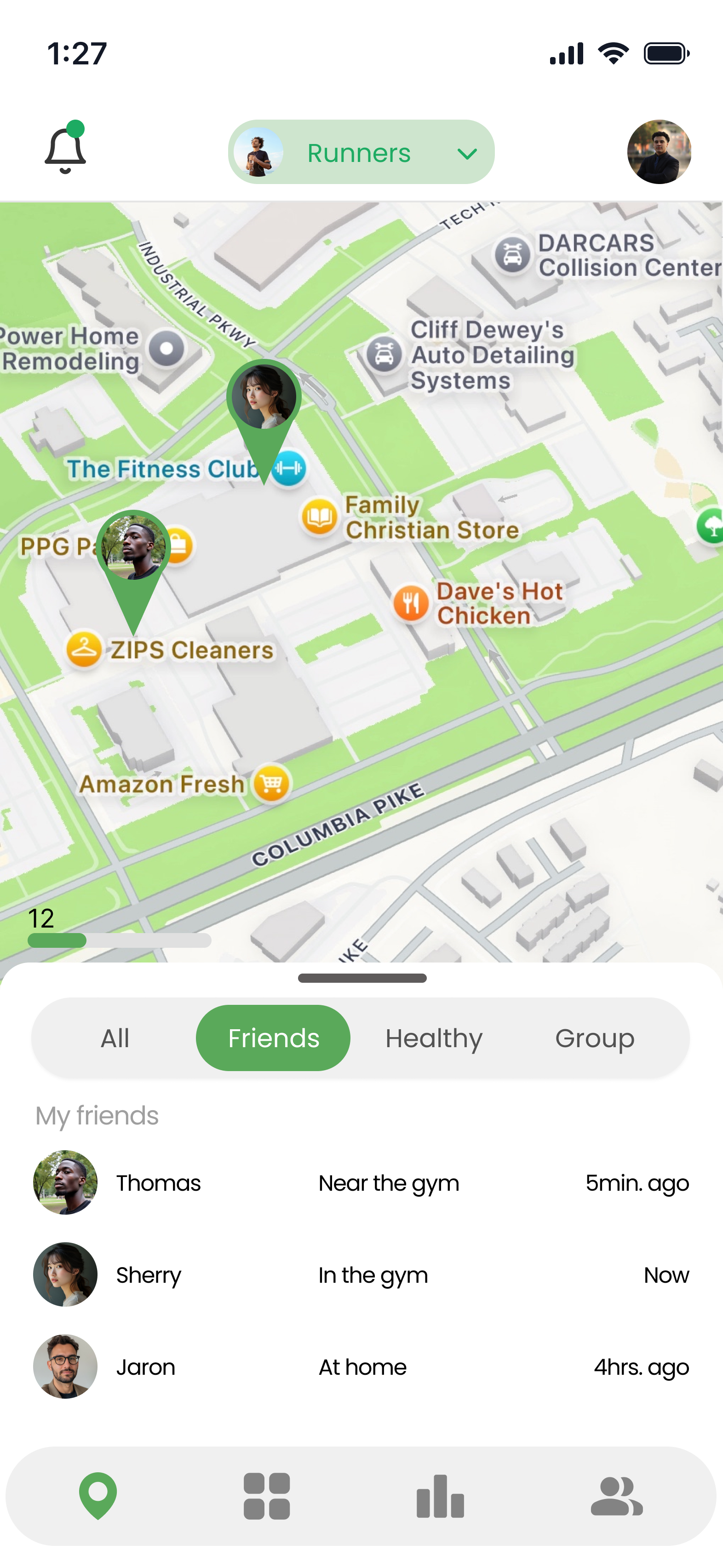 The Friend Map view enables users to see the real-time locations of group members within a chosen community, fostering accountability and motivation. By visualizing where friends are, this feature strengthens social connections and encourages healthy competition in habit-building.